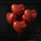 A festive bouquet of 5 Red Heart-Shaped Helium Balloons. These floating declarations of love add height, drama, and a touch of whimsy to your surprise.