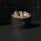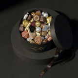 Our full-size "Boîte de Dégustation", filled to the brim with our signature assortment of premium chocolates, crunchy nut clusters, and candied fruits. It is a sensory journey of over 30 varieties of fine chocolate.