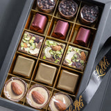 Gourmet Chocolate Box: A decadent box of our signature artisanal chocolates, presented in our sleek black luxury packaging.