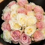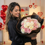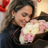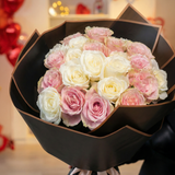 Blush & White Roses – How sweet is this? Nothing compares to receiving a dozen roses; now imagine being able to customize it. Add your loved one’s name on our Signature Cone, available in black and silver. For more romantic floral options, explore our Romance arrangement.