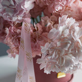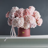 Indulge in the timeless beauty of our Elegant Pink Hydrangea Bloom Vase. A lush collection of delicate blush pink hydrangeas expertly arranged in a stylish high quality vase. Perfect for gifting or adding a touch of sophisticated charm to any space.