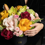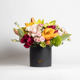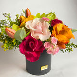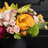 Give the gift of Joy to this special person by sending them this vibrant arrangement of perfect colors. Prepared in a modern black signature pot, The Brandy pops with color. Pair it with the subtle elegance of the Soy Signature Candle or complement it with the delicate beauty of Blush & White Roses for a truly memorable gift. Perfect for creating moments that last.