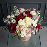 Texture and romance au rendezvous. Make that special someone blush with the soft-to-bold shades of pink featured in this arrangement. Set in our pink signature vase, this beautiful composition is wrapped with love and delivered with care. For a complementary touch, consider replacing it with our Blush & White Roses for a softer aesthetic or enhancing it with the timeless elegance of Romance for an unforgettable gift.