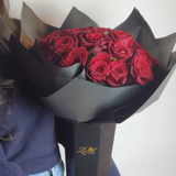 Pair this breathtaking arrangement with the delicate charm of the White Roses for a contrasting display, or explore the romantic tones of the Pink Elegance bouquet. To add a lasting impression, consider our Blushing Eternity Roses, perfect for long-term admiration.